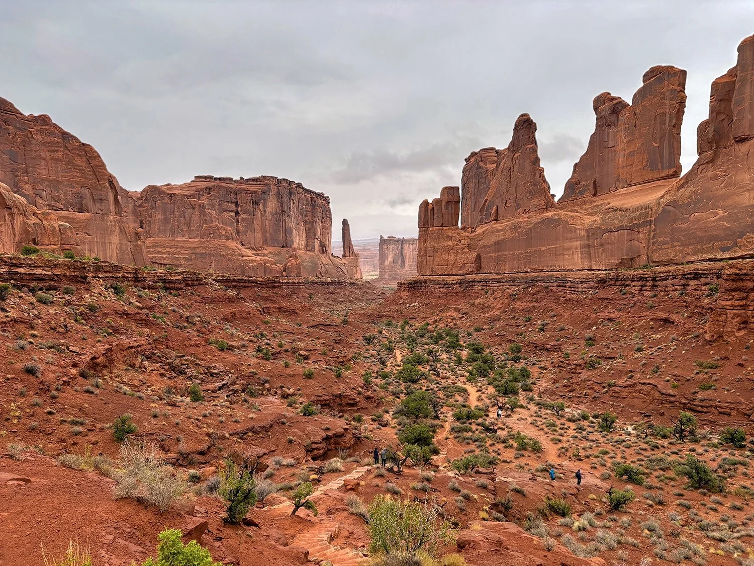 It was a rainy morning, but nevertheless, it turned out to be a great day. As we were only going to have one full day in Moab, we were determined to go to the nearby Arches National Park, whatever the weather forecast. When we drove into Moab yesterday, it wasn’t what we expected. The main street in town was very touristy commercial. Tourist shops and restaurants lined the main street all the way to our hotel - people everywhere. Therefore we really didn’t know what to expect when we got to the National Park. But Arches National Park didn’t disappoint - beautiful majestic western landscape everywhere you looked.